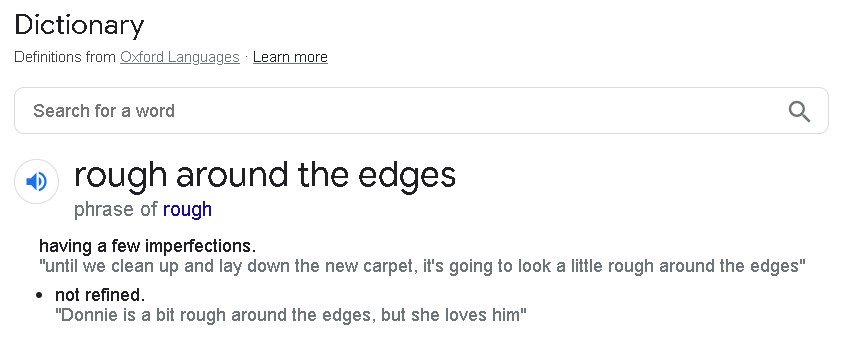 rough around the edges를 직역하자면 "가장자리쪽이 거칠다"라고 볼 수 있는데요.
