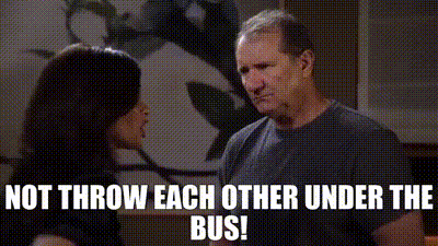 (Not throw each other under the bus!!)